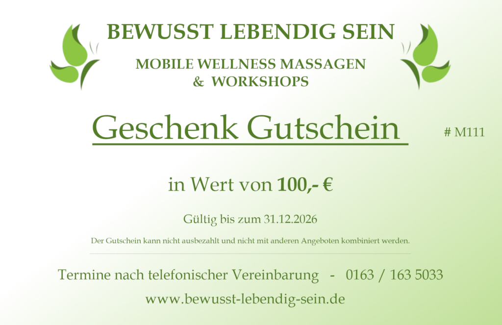 Die Gutscheine können auch für die Massage-Workshops erworben werden – ideal für alle, die Berührung nicht nur empfangen, sondern auch achtsam lernen und weitergeben möchten.